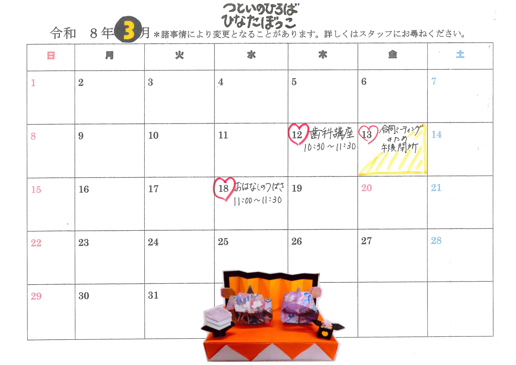 つどいの広場「ひなたぼっこ」の今月の行事予定について